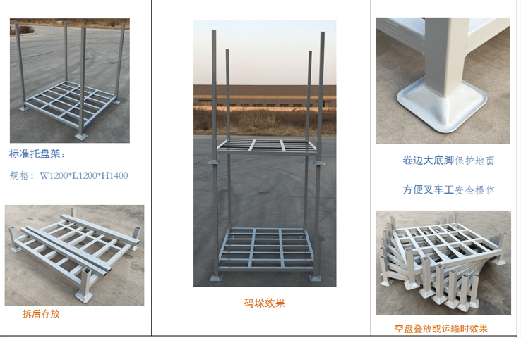 50A型托盤架 產(chǎn)品介紹:本產(chǎn)品主要優(yōu)點是與叉車配合實用,可充分利用倉庫高度空間。降低倉儲費用,管理和經(jīng)營費用。主要用于軟袋子包裝和紙箱包裝物品存放和顆粒物品存放防止積壓,常用于冷鏈、飼料、塑料顆粒倉儲及物流。