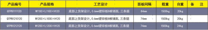 產(chǎn)品名稱:輕型B型鍍鋅托盤 產(chǎn)品編號:QTPB1210120 產(chǎn)品規(guī)格:W1200×L1000×H120 托盤主孔:100mm 托盤側(cè)孔:80 mm 產(chǎn)品自重:20kg 產(chǎn)品靜載:800kg 產(chǎn)品動載:600kg 上貨架載:300kg 產(chǎn)品配置:采用寶鋼鍍鋅板軋機成0.6*10*85多筋骨面板 10根,以間隔84mm 和6根板做腿+12個立撐 組成。 產(chǎn)品用途:廣泛用于酒水、食品、化工、電子等大量物品 倉儲與周轉(zhuǎn)。本結(jié)構(gòu)為上貨架設(shè)計。