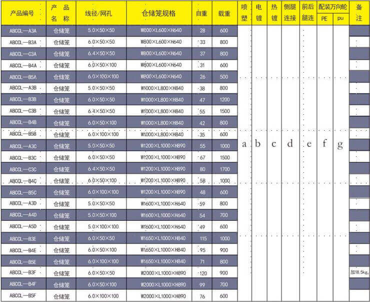 標(biāo)準(zhǔn)ABCCL—B3B型倉(cāng)儲(chǔ)籠 規(guī)格:6×50×50×W1000×L800×H840